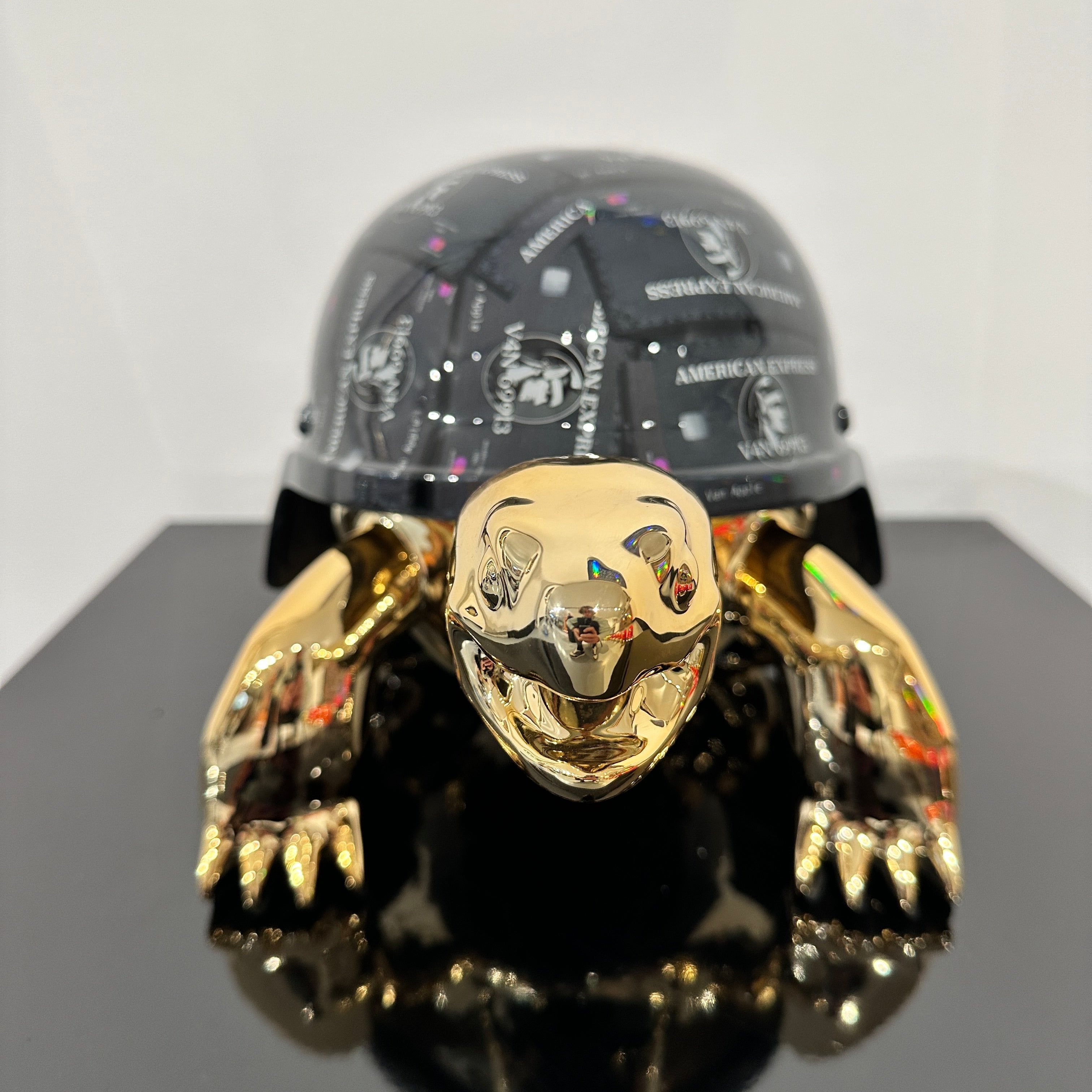 Van Apple created the Peace Turtles on his own artistic way. He gave the turtles a helmet instead of their shell, to show his love and respect for these protected species. The turtles are given a colorful and contemporary helmet, each design makes a statement.