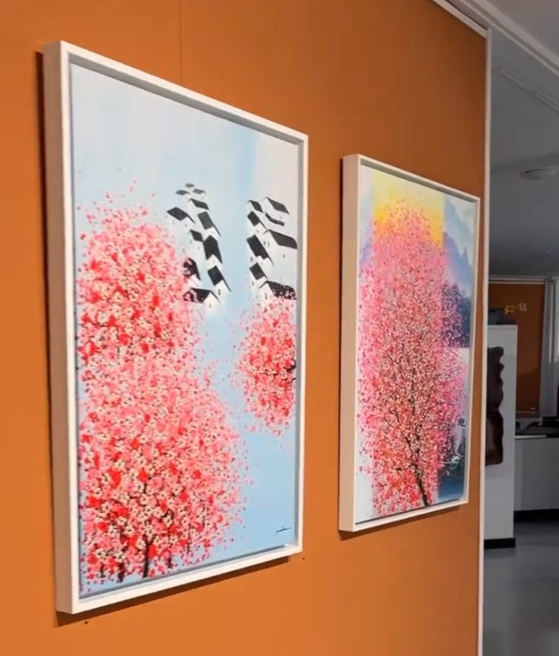 Betoverende kunstwerk van Je Shen inclusief witte baklijst.