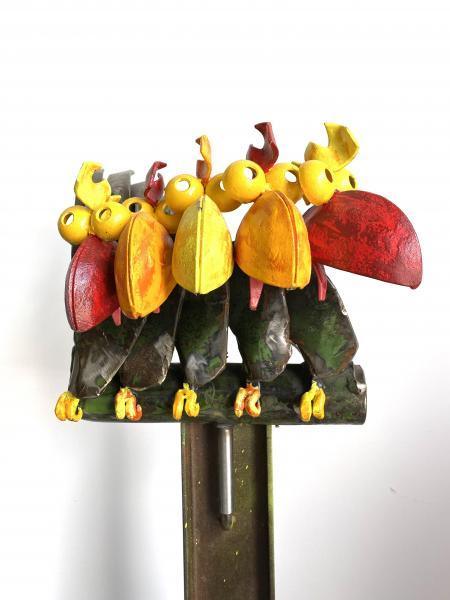 Alle gebruikte materialen komen van autokerkhoven en worden aan elkaar gelast tot de composities van Birds.