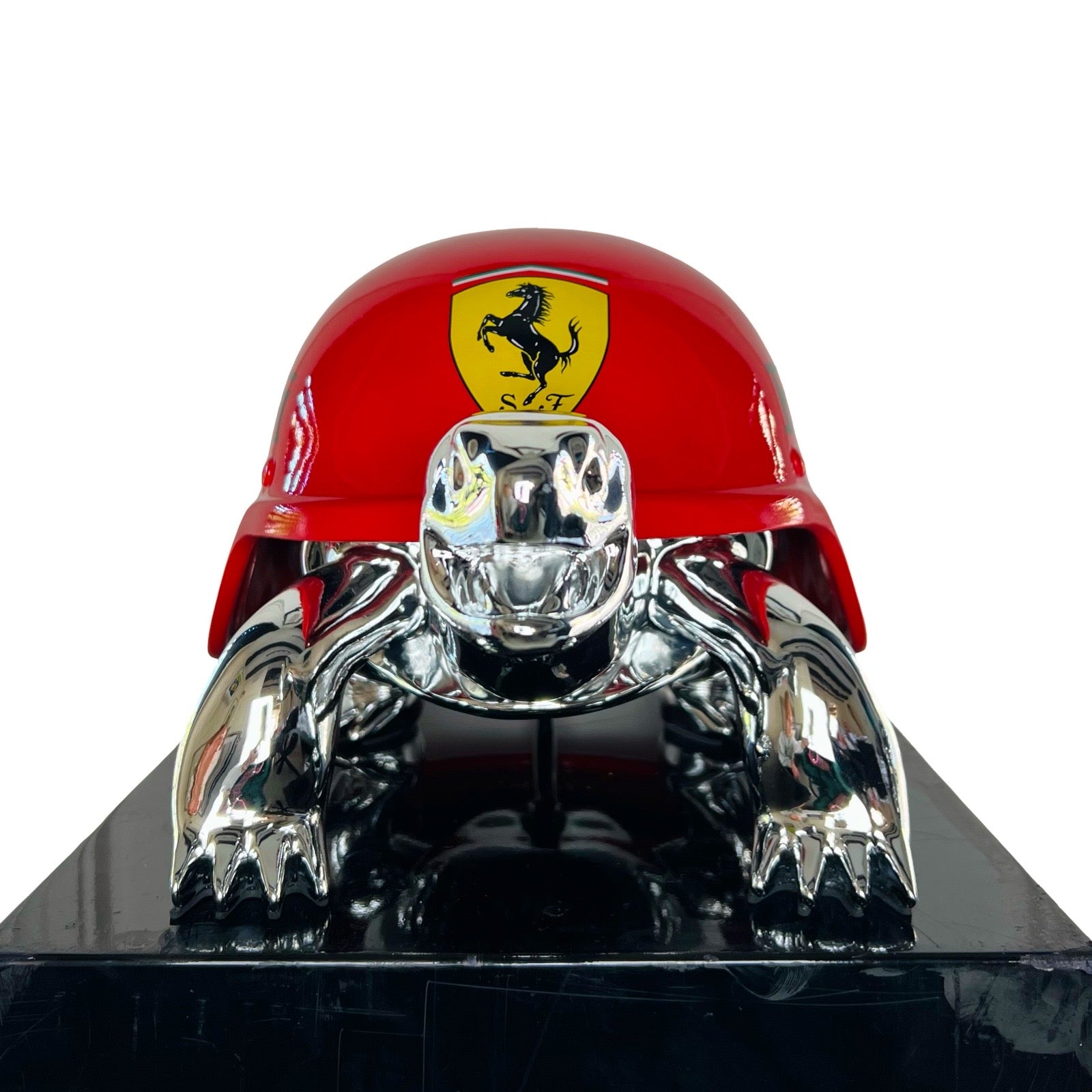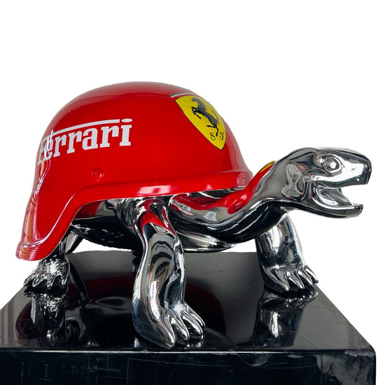 Van Apple created the  Peace Turtles on his own artistic way. He gave the turtles a helmet instead of their shell, to show his love and respect for these protected species. The turtles are created in gold to express their value and are given a colorful and contemporary helmet, each design makes a statement.