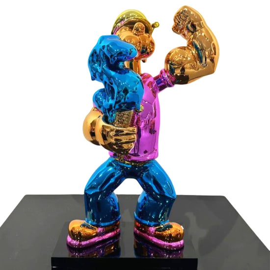 Van Apple created the Popeye on his own artistic way. It is handmade of Chrome with Resin and 42 cm high.