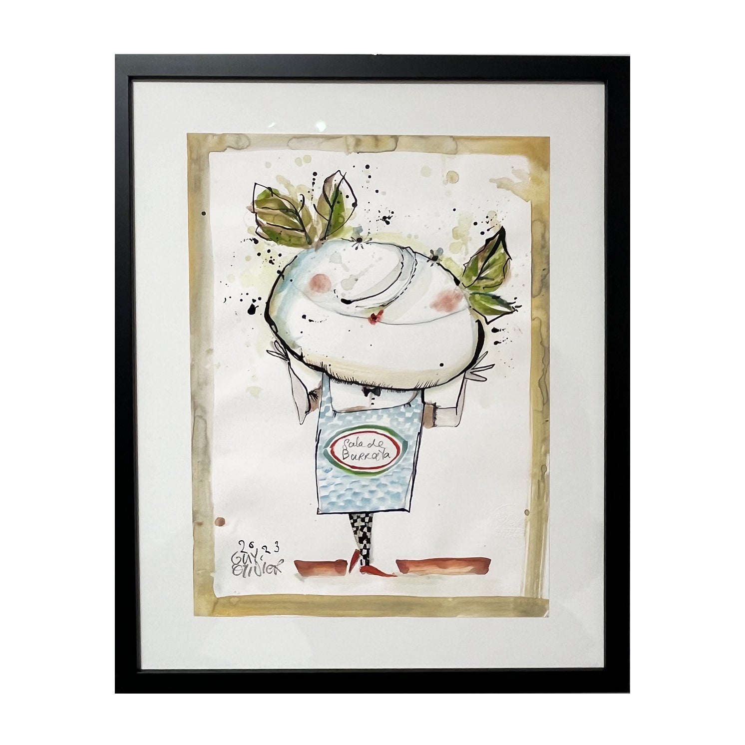 Een schitterend origineel kunstwerk van de kunstenaar Guy Olivier in zwarte lijst met museumglas.