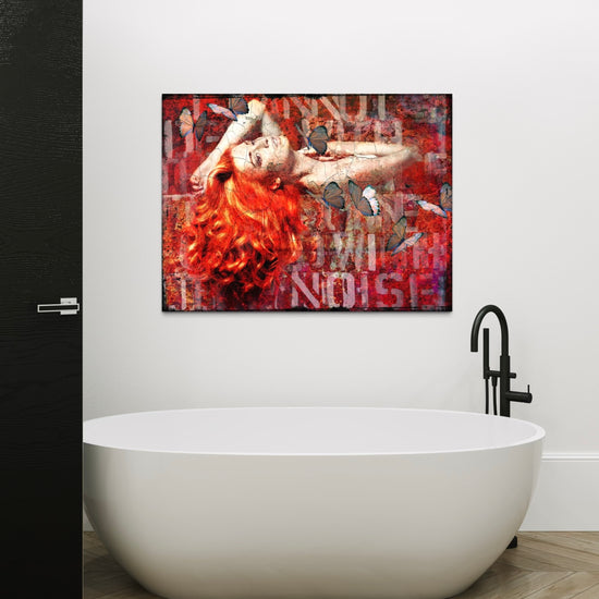 Het kunstwerk is gemonteerd op een aluminium dibond paneel en voorzien van een ophangprofiel.